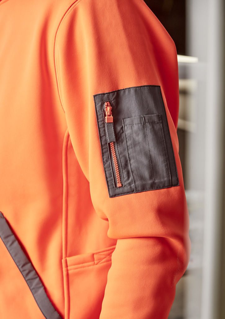 - Contrast arm pocket with zip closure